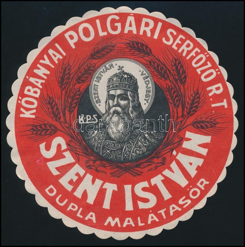 cca 1930 Kőbányai Polgári Serfőző Rt. Szent István malátasör dekoratív...