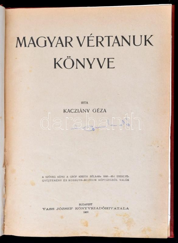 Kacziány Géza: Magyar vértanuk könyve. A szöveg képei a gróf Kreith Bé... https://www.darabanth.com/en/341-Online-auction/341.0/Books/Books-History~1000004/Kacziany-Geza-Magyar-vertanuk-konyve-A-szoveg-kepei-a-grof-Kreith-Bela-fele-1848-49-i-ere~II1919387