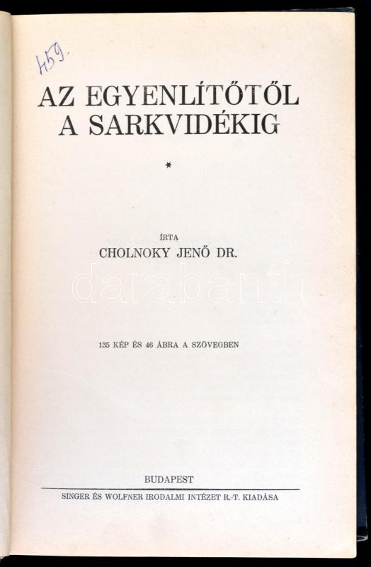 Dr. Cholnoky Jenő: Az egyenlítőtől a sarkvidékig. Bp.,1930,Singer és W... https://www.darabanth.com/en/341-Online-auction/341.0/Books/Books-Travelling-Local-History~1000001/Dr-Cholnoky-Jeno-Az-egyenlitotol-a-sarkvidekig-Bp-1930-Singer-es-Wolfner-Fekete-feher-fo~II1917060