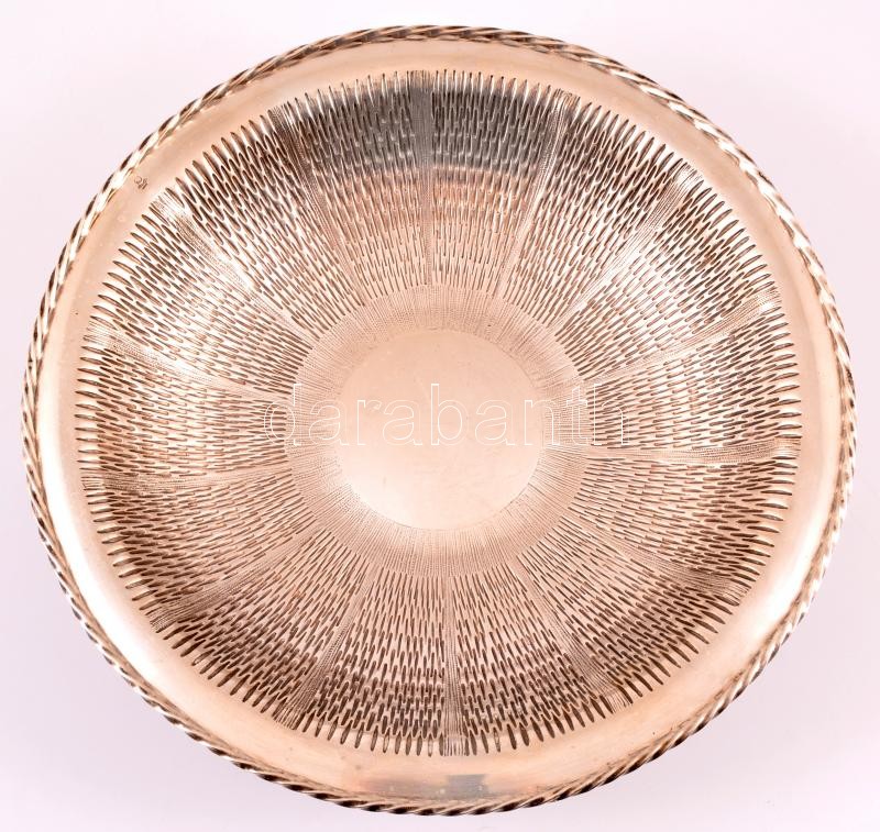 Ezüst (Ag.) gyümölcsöstál, jelzett (Sterling Budapest), vésett, d:33 c...