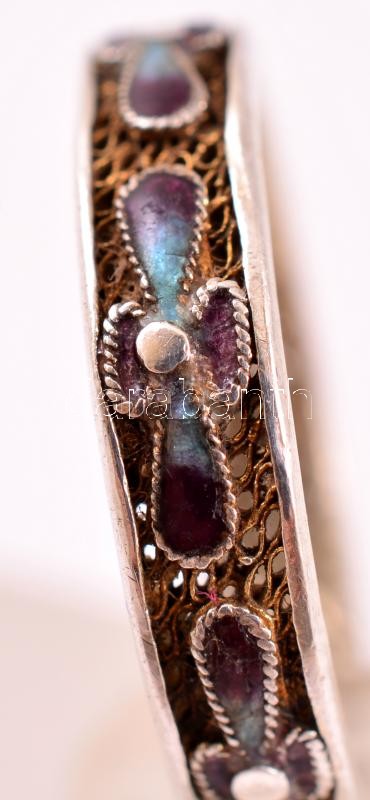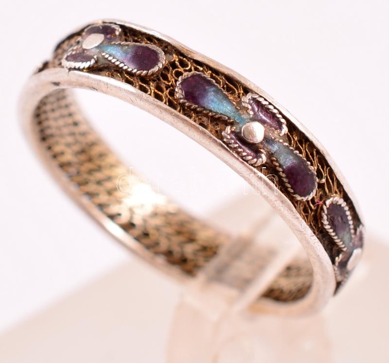 Ezüst (Ag.) gyűrű zománc díszítéssel, méret: 52, jelzett, bruttó: 1,5 ...