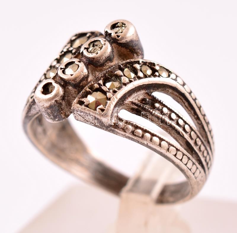 Ezüst (Ag.) markazit berakásos gyűrű, jelzett, méret: 52, nettó 4,3 g