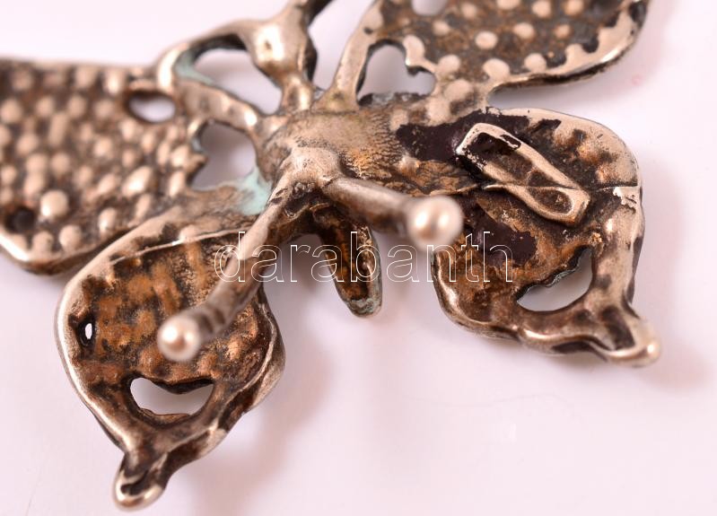 Ezüst (Ag.) pillangó, jelzett, 3,5×2,5 cm, nettó:4,6 g
