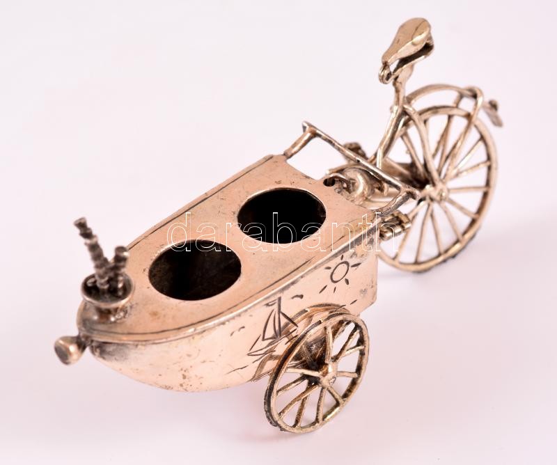 Ezüst (Ag.) régi fagylaltos kocsi, h:8,5 cm, m:5 cm, jelzett, nettó: 56 g
