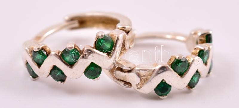 Ezüst(Ag) apró zöld kövekkel díszített fülbevalópár, jelzett, d: 1,2 c...