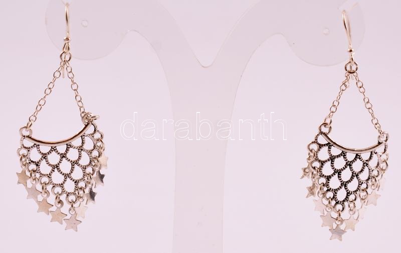 Ezüst(Ag) csillagokkal díszített fülbevalópár, jelzett, 5,78×2,2 cm, nettó: 4,9 g