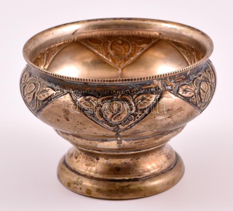 Ezüst(Ag) cukortartó, üvegbetét nélkül, jelzett, d: 9 cm, m: 6,5 cm, n...