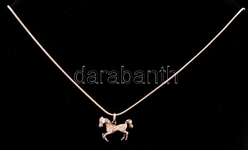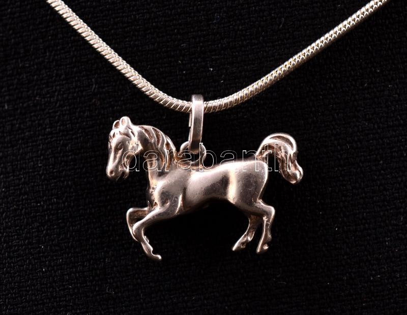 Ezüst(Ag) kígyó nyaklánc, ló függővel, jelzett, h: 46 cm, 1,8×1,3 cm, nettó: 5,8 g