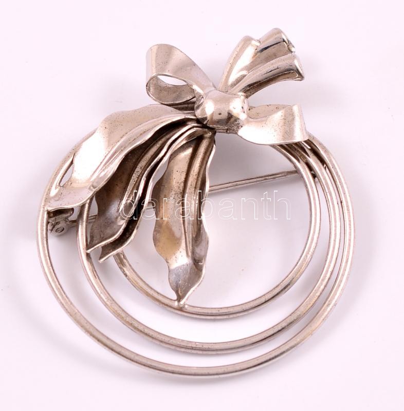 Ezüst(Ag) masnis-karikás bross, jelzett, 4×5,2 cm, nettó: 11 g