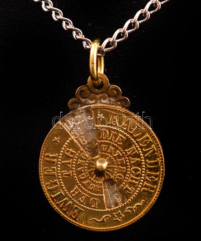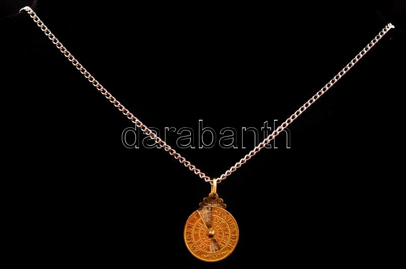 Ezüst(Ag) nyaklánc, jelzett, h: 59 cm, antik öröknaptár medállal, brut...