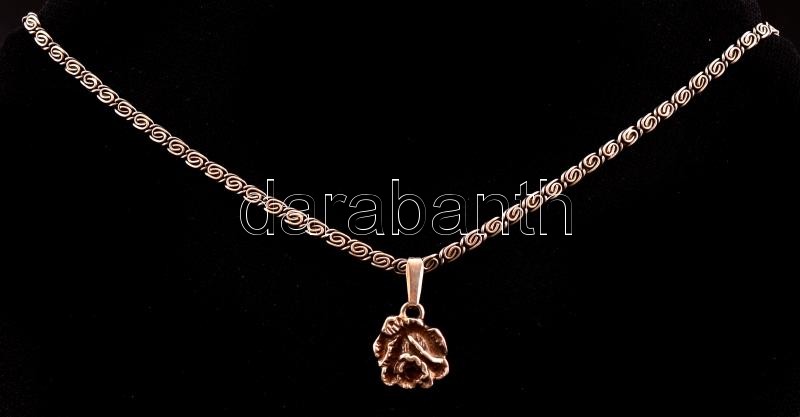 Ezüst(Ag) nyaklánc, rózsa medállal, jelzett, h: 52 cm, nettó: 14,6 g