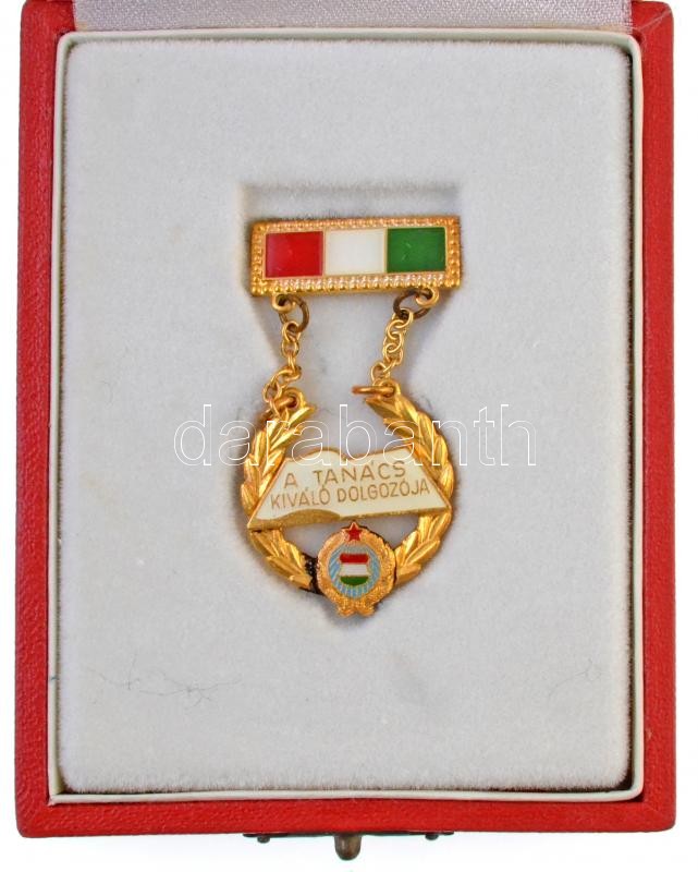 ~1960-1970. "A Tanács Kiváló Dolgozója" aranyozott, zománcozott fém kitüntetés eredeti tokban T:1-,2
