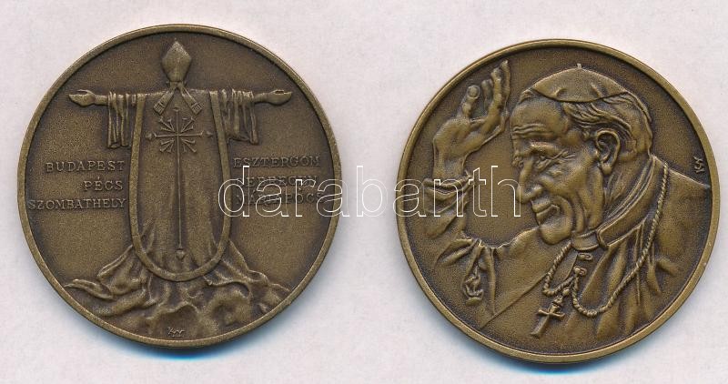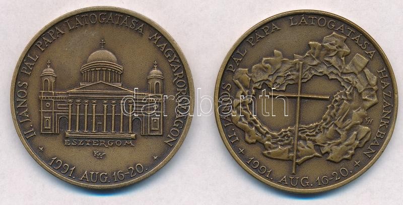 Description: Kiss György (1943-2016) 1991. "II. János Pál pápa látogatása Magyarországon - Esztergom / Budapest, Pécs, Szombathely, Esztergom, Debrecen, Máriapócs" Br emlékérem (42,5mm) + "II. János Pál látogatása hazánkban" Br emlékérem (42,5mm) T:1-