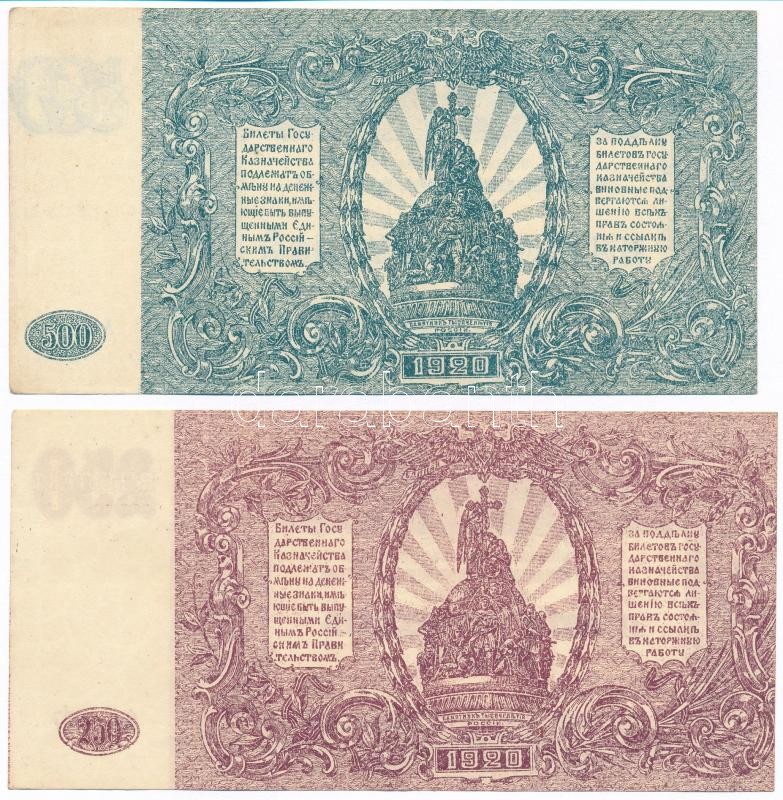 Orosz Polgárháború / Dél-Oroszország / Wrangel Hadserege 1920. 250R + ... https://www.darabanth.com/en/341-Online-auction/341.0/Numismatics/Worldwide-banknotes~2000012/Orosz-Polgarhaboru-Del-Oroszorszag-Wrangel-Hadserege-1920-250R-plus-500R-TII--Russian-Civil~II1922473