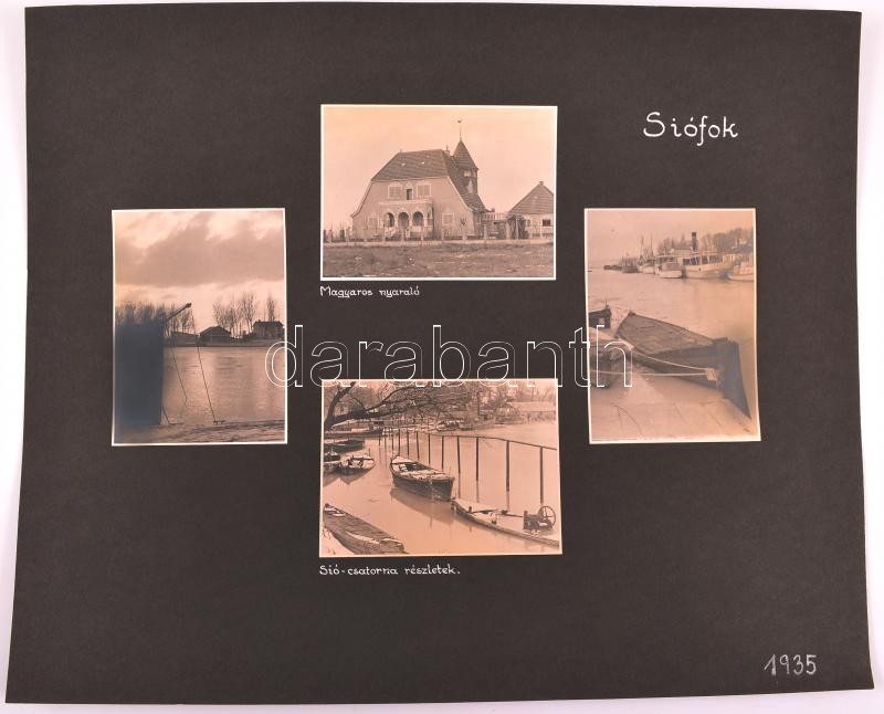 1935 Siófok, 4 db kartonra ragasztott, részben feliratozott fotó, jó á...