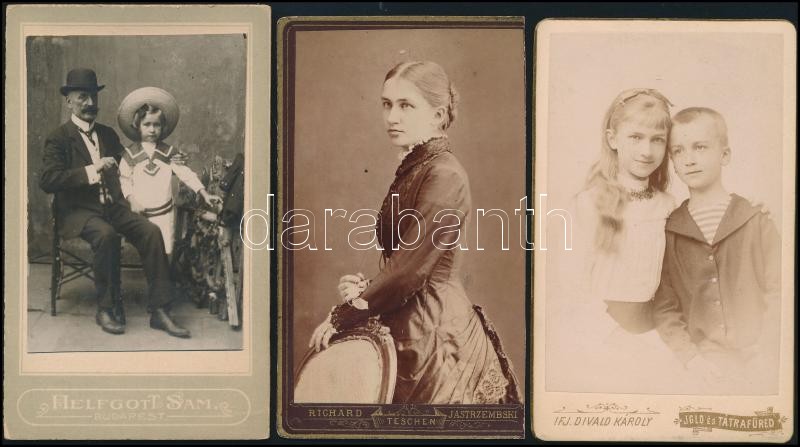cca 1900 3 db vizitkártya portré: Helfgott, Divald,