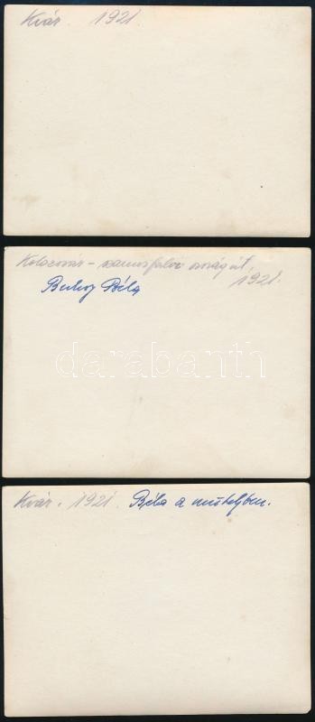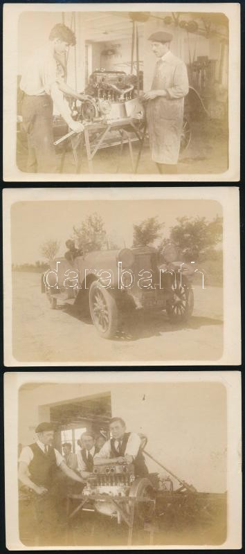 cca 1921 Kolozsvár, autós fényképek: műhelyben, a szamosfalvi országúton, stb., 3 db, hátuljukon feliratozva, 9×12 cm