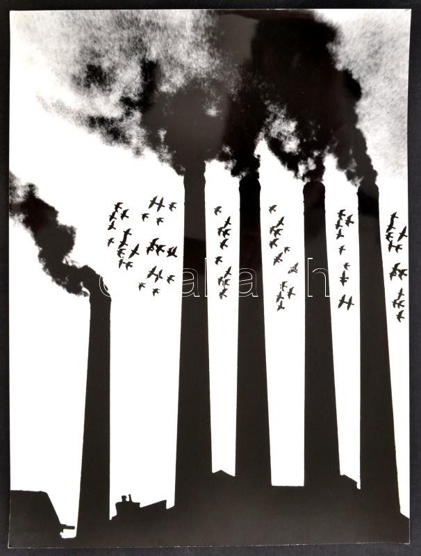 cca 1975 Gebhardt György (1910-1993) budapesti fotóművész hagyatékából feliratozott, vintage fotóművészeti alkotás (Füstártalom), 39x29 cm