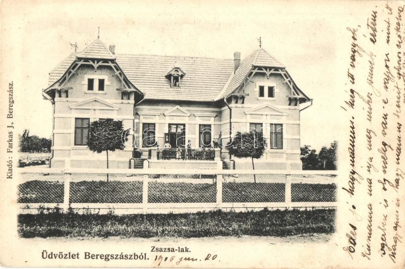 1906 Beregszász, Berehove; Zsazsa lak. Kiadja Farkas J. / villa (EK)