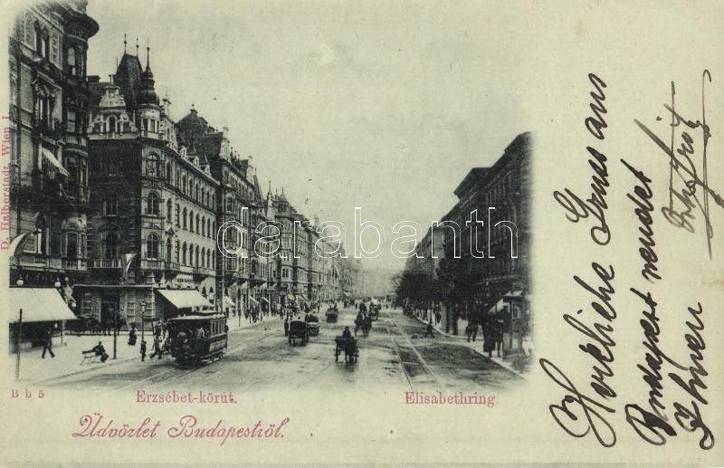 1898 Budapest VII. Erzsébet körút, villamos. D. Halberstadt (apró lyuk...