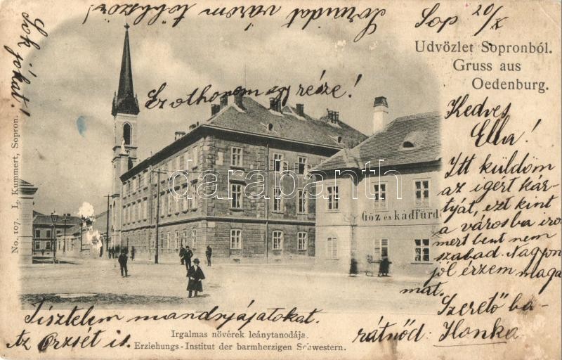 1899 Sopron, Oedenburg; Irgalmas Nővérek leánytanodája, Gőz és kádfürdő. Kiadja L. Kummert No. 107. (enyhén ázott sarkak / slightly wet corners)