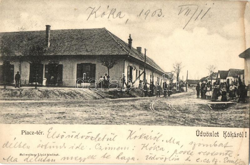1903 Kóka, Piac tér, üzletek. Kiadja Schweitzer Lipót (fl)