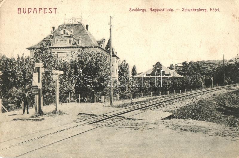 1908 Budapest XII. Svábhegy, Nagyszálloda, Gyógyszertár, fogaskerekű vasút sínek (EK)