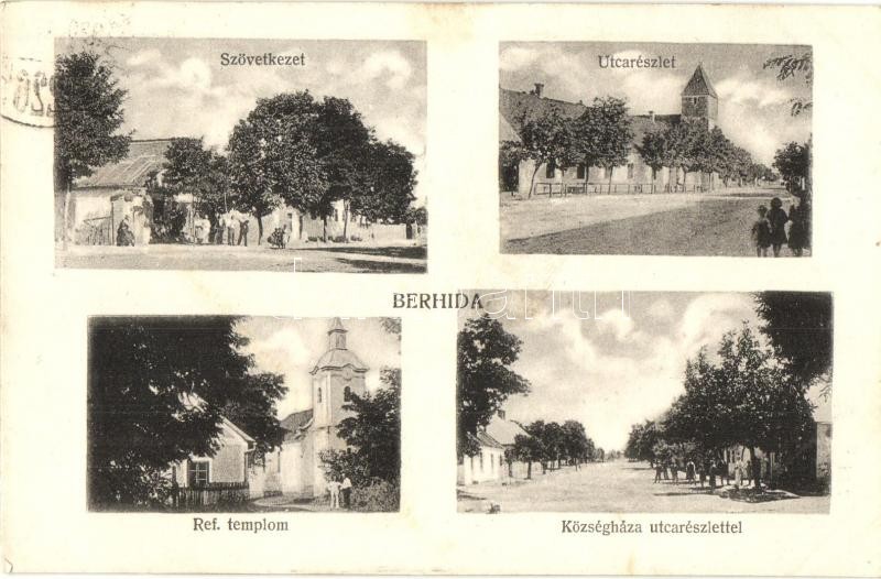 Berhida, Szövetkezet üzlete, utcakép, Református templom, Községháza