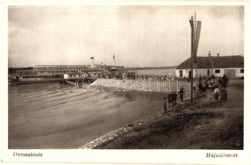 Dunaalmás, Hajóállomás, gőzhajó, Országzászló. Kiadja a Hangya Szövetk...
