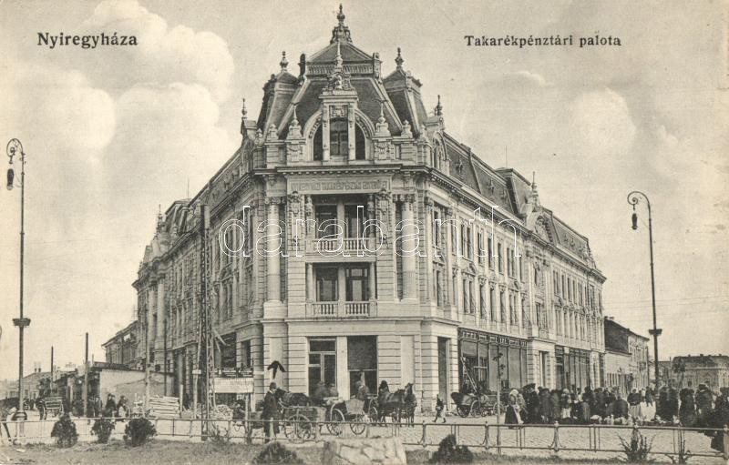 Nyíregyháza, Takarékpénztári palota, Lieber üzlete, piac. Szántó Ernő ...