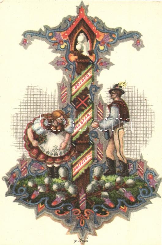 Boldog magyar húsvétot! / Hungarian irredenta. Easter greeting art postcard s: Bozó