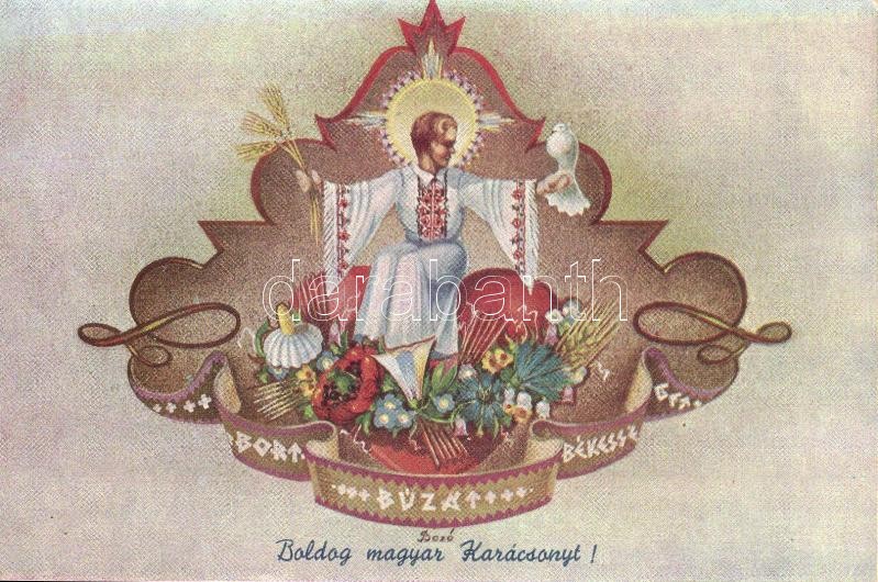 Boldog magyar karácsonyt! / Hungarian irredenta. Christmas greeting art postcard s: Bozó (EK)