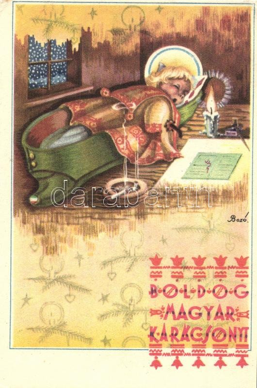Boldog magyar karácsonyt! / Hungarian irredenta. Christmas greeting art postcard s: Bozó