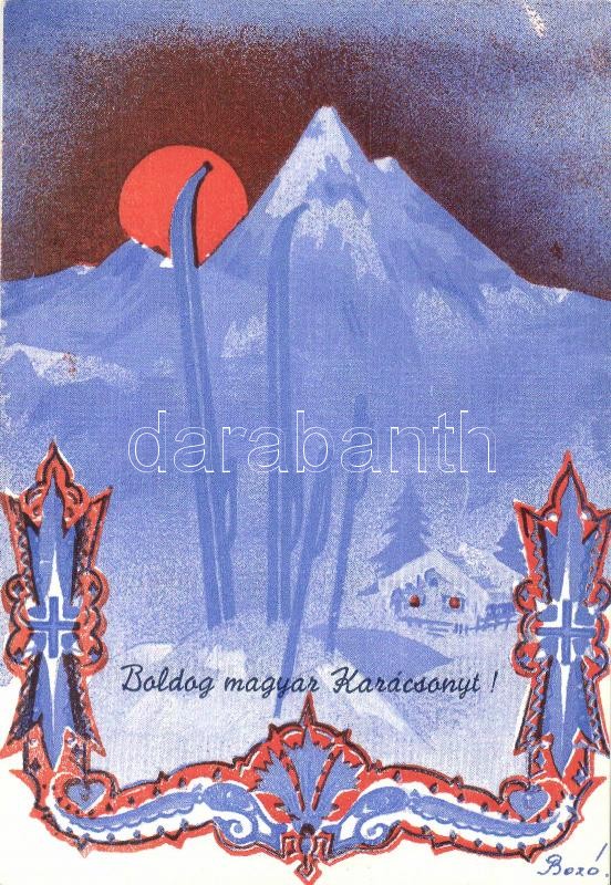 Boldog magyar karácsonyt! / Hungarian irredenta. Christmas greeting art postcard s: Bozó