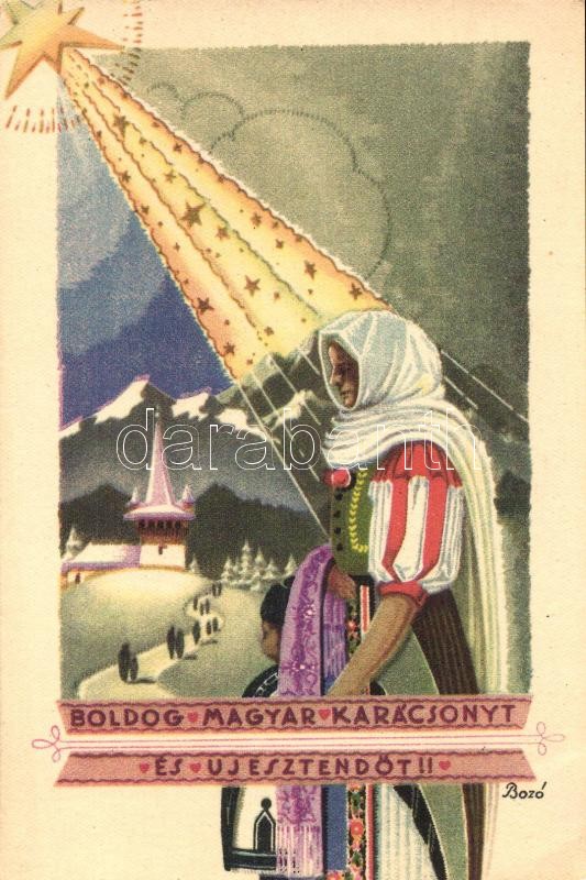 Boldog magyar karácsonyt és újesztendőt / Hungarian irredenta. Christmas and New Year greeting art postcard s: Bozó (EK)