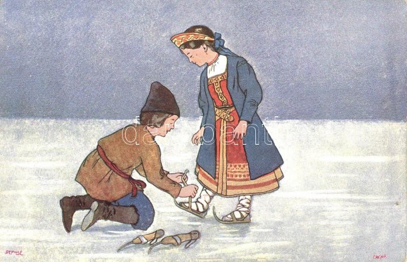 Folklore couple attaching ice skates. winter sport. B.K.W.I. 575-5. Há... https://www.darabanth.com/en/341-Online-auction/341.0/Postcards/Sport~1500071/Folklore-couple-attaching-ice-skates-winter-sport-BKWI-575-5-Hatoldalon-reklam-Ha-szaraz-~II1922214