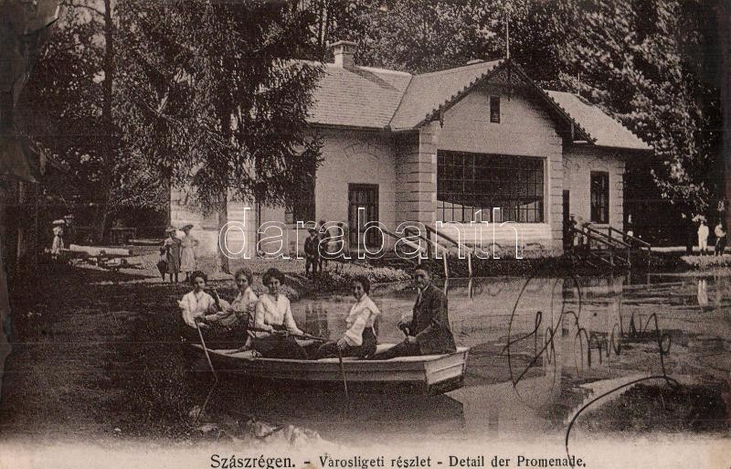 1909 Szászrégen, Reghin; Városliget, csónakázók / park with people in ...