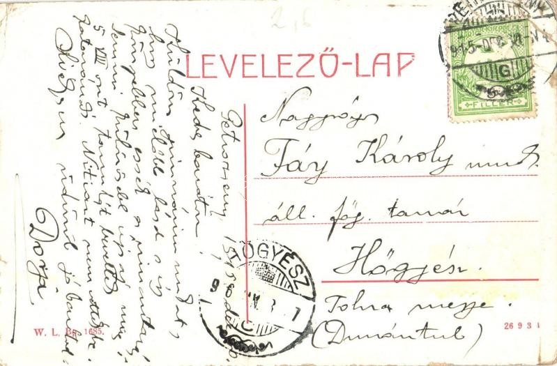 1915 Petrozsény, Petrosani; Gimnázium. W. L. Bp. 1685. / high school, ...