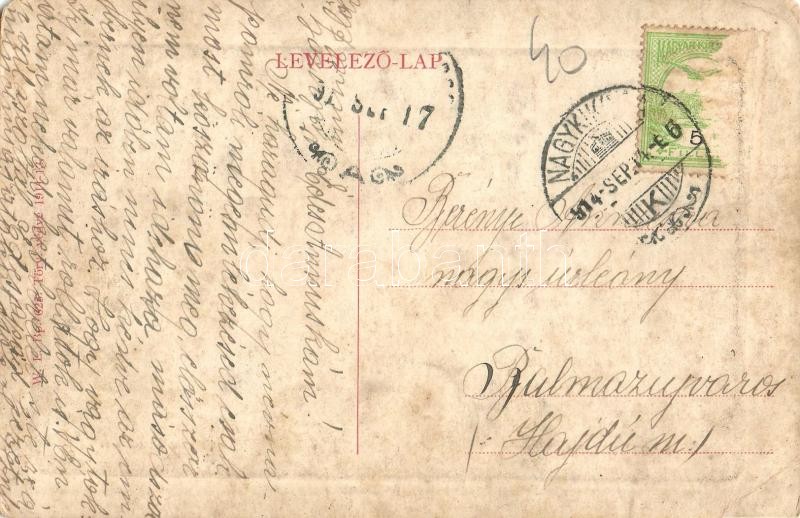 1914 Nagykikinda, Kikinda; Ferenc József tér, templom, üzletek. W.L. B...