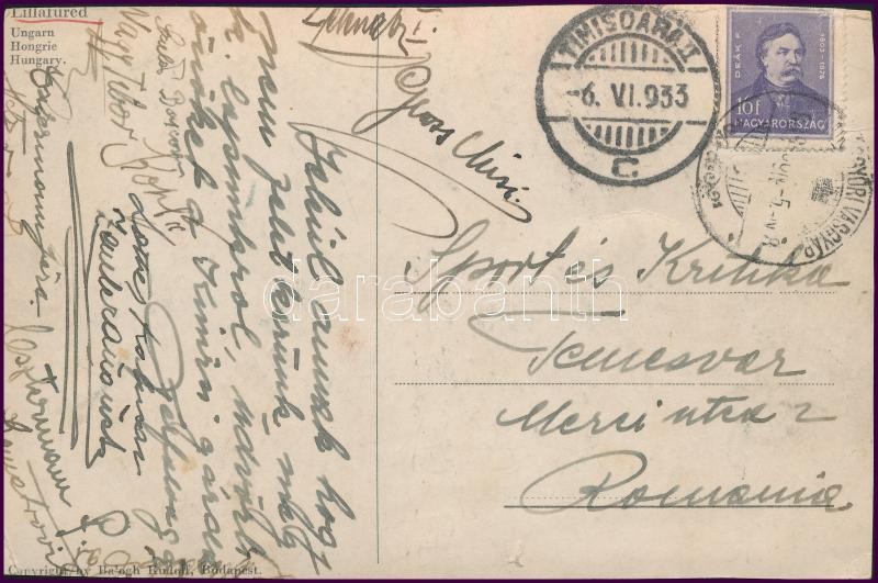 1933 a Temesvári Kinizsi SE játékosainak aláírásai levelezőlapon (Glas...
