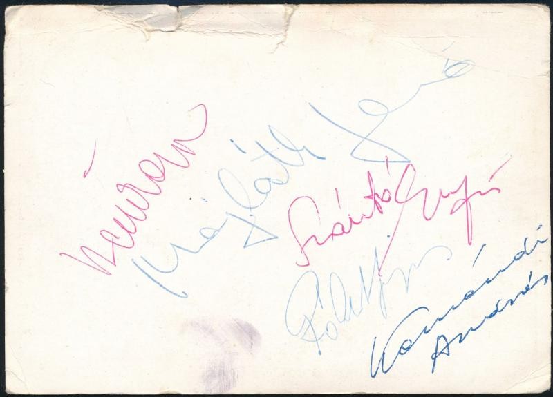 A Holéczy együttes tagjainak aláírásai az együttest ábrázoló fotólap hátulján