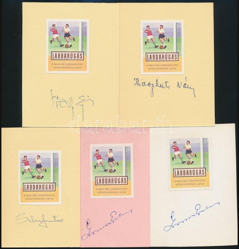 Tichy, HIdegkuti, Sebes Gusztáv, 2x Grosics aláírás landarúgás bélyegs...