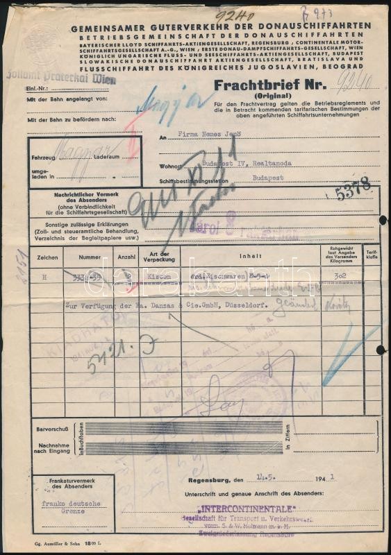 https://www.darabanth.com/en/342-Online-auction/342.0/Art-and-other-collectibles/Documents~500018/1941-Regensburg-Gemeinsamer-Guterverkehr-der-Donauschiffahrten-fuvarlevele~II1928515