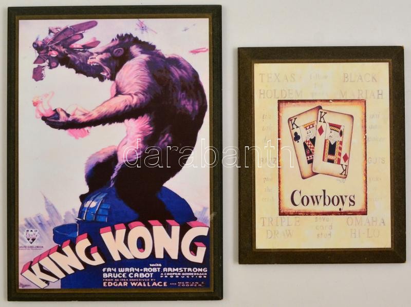 2 db falikép, King Kong és kártyás nyomattal, 22x17 és 30x22 cm