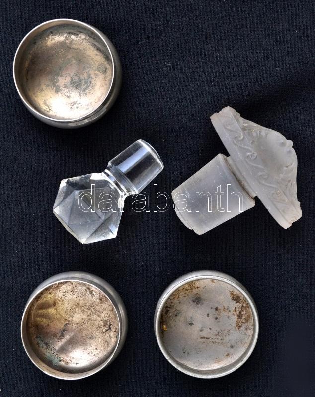 Fém kupakok és üveg dugók (rajta csorba), 5 db