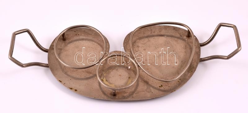 Fém reggeliző tálca, hiányos, 29×11 cm