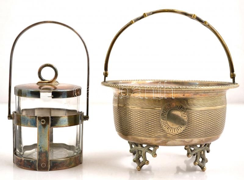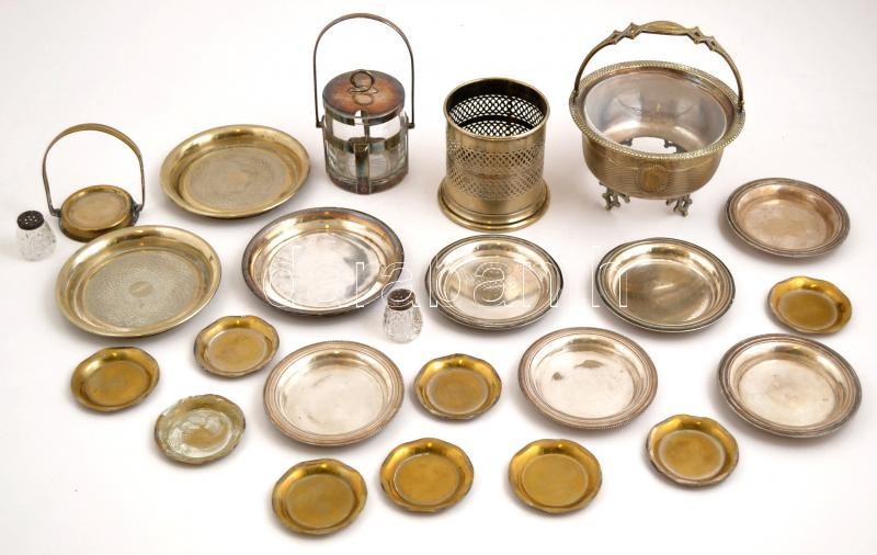 Régi alpakka és réz tárgyak: több jelzett (Berndorf, Hacker), tálkák, kínálókosár, tartók, stb, összesen:25 db