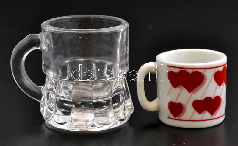 Szívecskés és üveg mini bögre, hibátlanok, m: 3 és 4,5 cm
