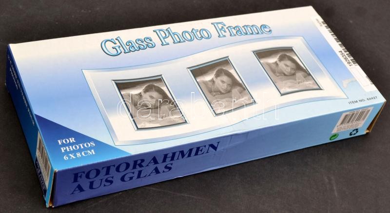 Üveg fényképtartó 6×8 cm-es fotókhoz, eredeti dobozában