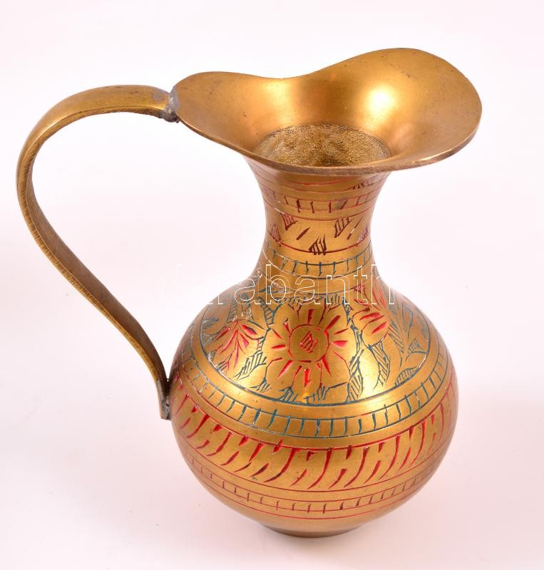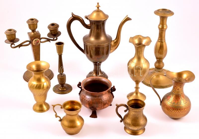 Vegyes réz tárgy tétel (gyertyatartó, váza, kiöntő stb.), 10 db